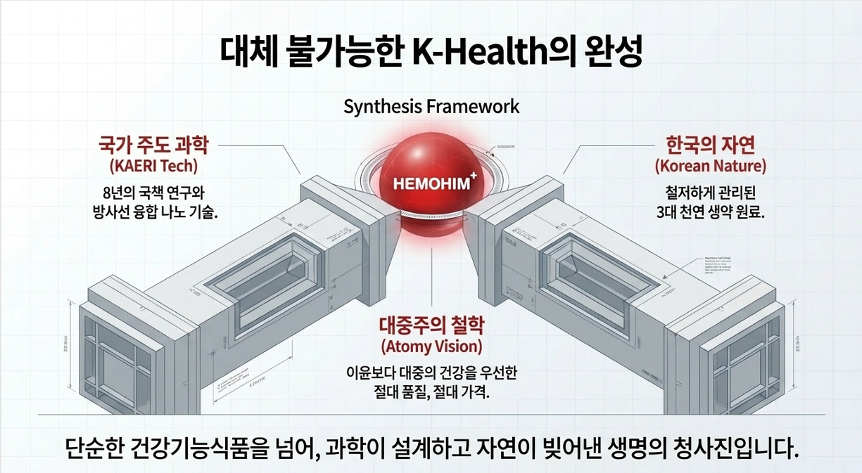헤모힘의 성공은 한국 고유의 자원과 국가적 첨단 기술이 만났을 때 어떤 세계적 경쟁력을 가질 수 있는지를 보여주는 완벽한 사례입니다. 이는 단순히 건강기능식품 하나가 잘 팔리는 것을 넘어, 국가 연구 성과가 국민의 식탁 위에서 실질적인 건강 증진으로 이어진 상생의 모델입니다.