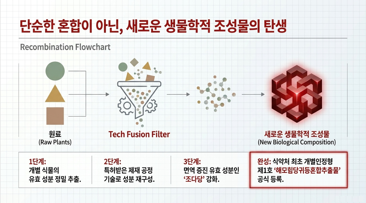 - 고순도 정제 기술의 정점: 기존 천연물 추출 방식의 한계였던 불필요한 색소와 불순물, 특유의 강한 냄새를 제거하는 고순도 정제 기술이 적용되었습니다. 이는 프리미엄 화장품 개발에 쓰인 나노 기술과 맥을 같이하며 유효 성분의 흡수율과 효능을 비약적으로 높이는 토대가 되었습니다.